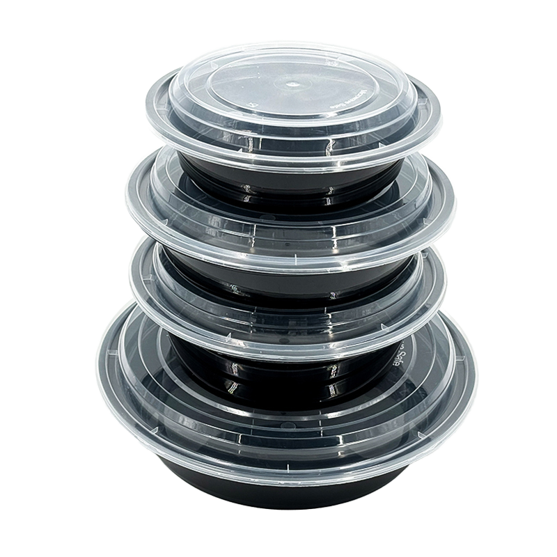 High-quality thick microwave-safe food-grade16oz 24oz 32oz 48oz round food container black or white or transparent